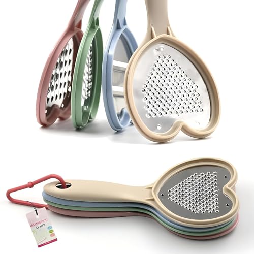 Generic - مبشرة صغيرة 4 في 1 من الستانلس ستيل مع سلسلة مفاتيح بتصميم قلب، اداة مطبخ صغيرة محمولة باليد للخضروات والجبن والثوم