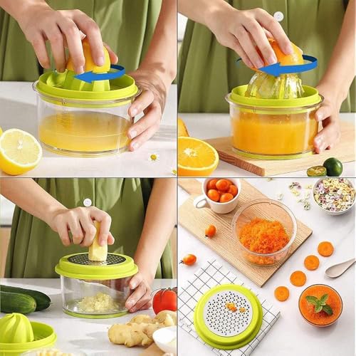 AREXOL - عصارة ومبشرة متعددة الوظائف 4 في 1 سعة 600 مل، عصارة حمضيات قياسية من الاكريليك الشفاف للمكونات اليومية، ملحقات المطبخ