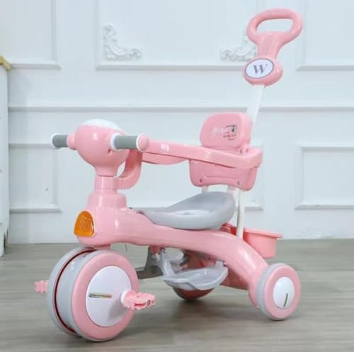 Generic - دراجة أطفال ثلاثية العجلات متعددة الوظائف 4 في 1 مع مقبض دفع للأبوين، عربة ركوب تتحول إلى دراجة توازن مستقلة بموسيقى وإضاءة LED، تصميم آمن قابل للتعديل للأعمار من 1 إلى 6 سنوات (وردي)