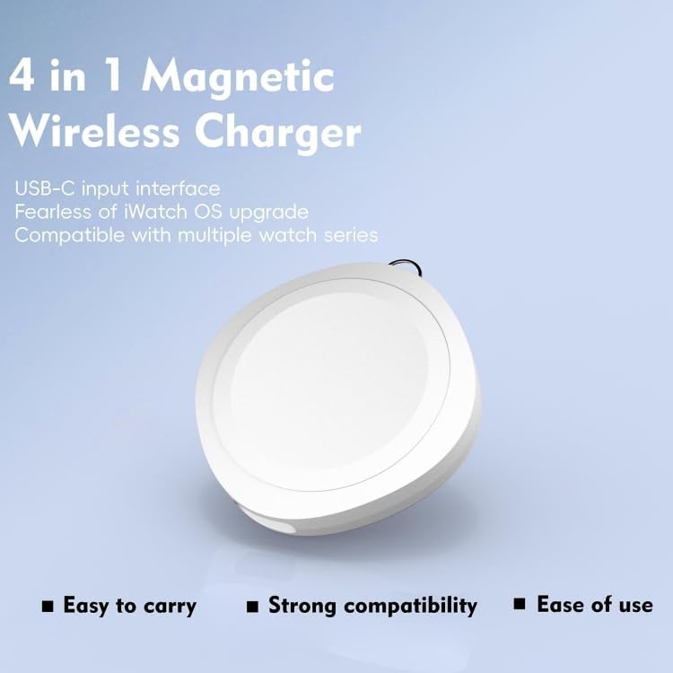 - حل شحن لاسلكي 4 في 1 - اشحن أجهزة متعددة في نفس الوقت باستخدام شاحن لاسلكي صغير واحد، مما يقلل من فوضى الكابلات ويوفر المساحة.