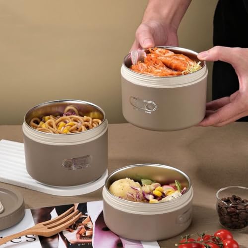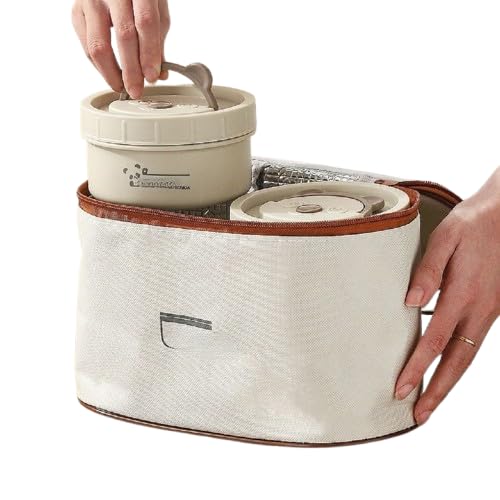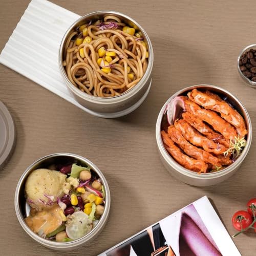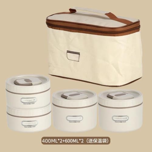 Generic - طقم حفظ وجبات حراري احترافي 4 في 1 مع حقيبة منظمة - مجموعة علب دائرية معدنية من الداخل بأحجام متنوعة وإغلاق محكم للشوربة والأطعمة ka