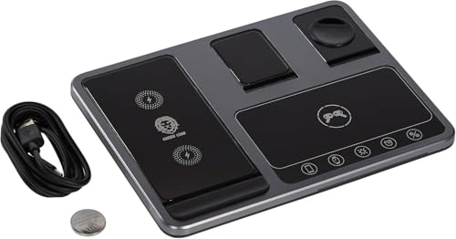 Generic - شاحن لاسلكي ذكي 4 في 1، متوافق مع الهواتف الذكية وساعات وسماعات، أسود، مع كابل USB، قاعدة شحن متعددة الأجهزة