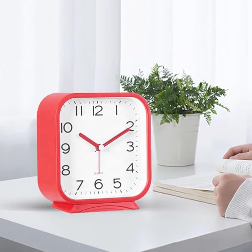 Generic - ساعة مكتبية منبه مربعة الشكل مقاس 4 بوصات، كوارتز، تصميم عصري بأرقام واضحة (أحمر)