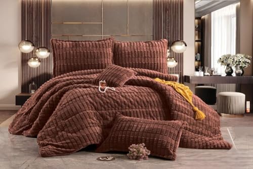 Generic - لحاف فرو 4 قطع - الوجهين - حشو فايبر حراري - موديل اسباني - مقاس كينج - 1 240*260 - 2 خدادية 60*80 - كوشن 45*45 - باللون الطوبي الغامق