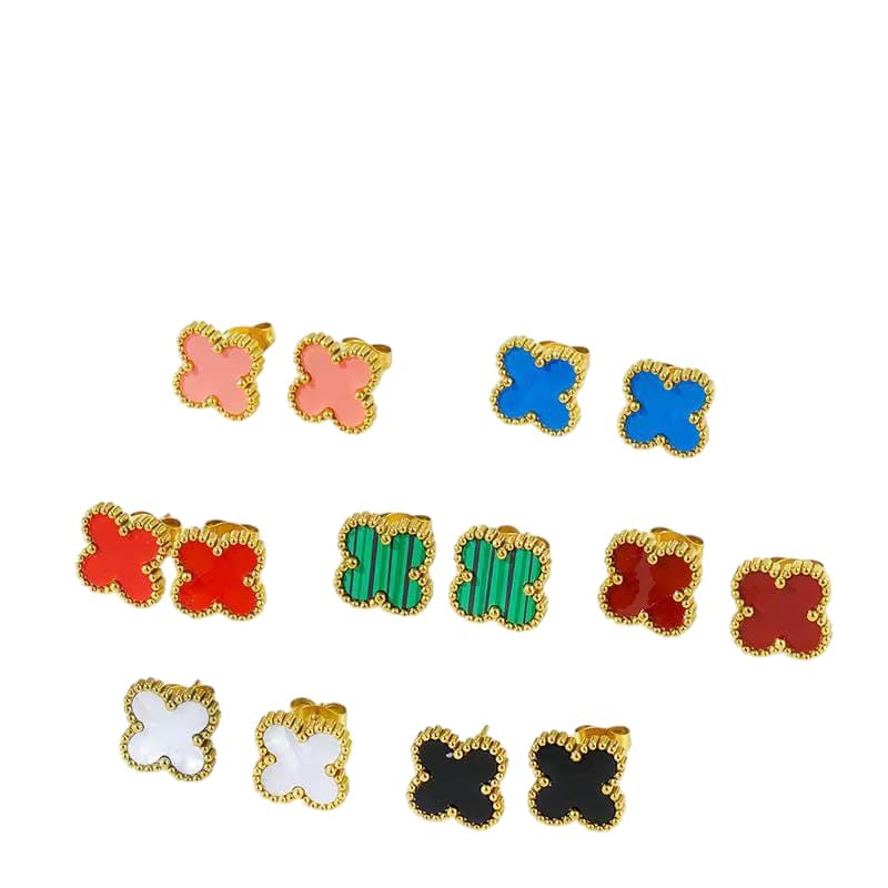 Generic - حلقان زهرة البرسيم بأربع اوراق للنساء من الستانلس ستيل 4 أوراق شجر للحظ السعيد ، مجوهرات هدية للأم والابنة