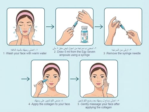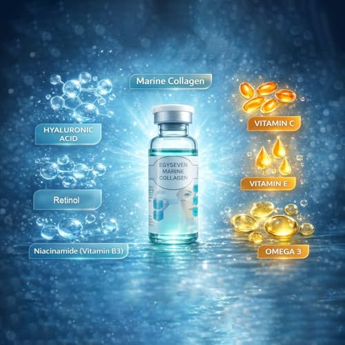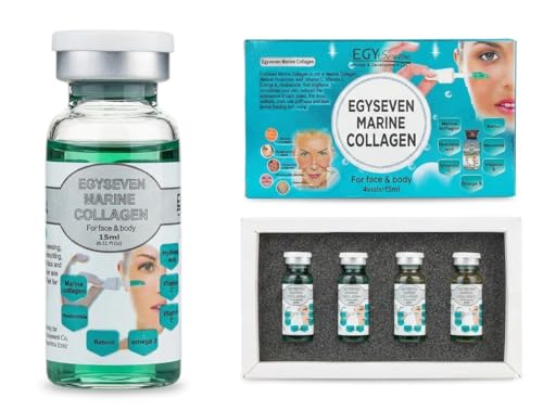 Egyseven - 4 أمبولات كولاجين بحري العلاجية لشد وتجديد البشرة، تقليل التجاعيد والمسام، وتفتيح التصبغات بتركيبة رباعية مُركزة - ريتينول، نياسيناميد، هيالورونيك، كولاجين - مرخص هيئة الدواء المصرية