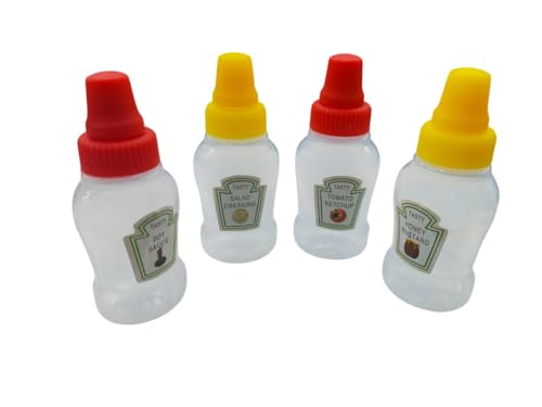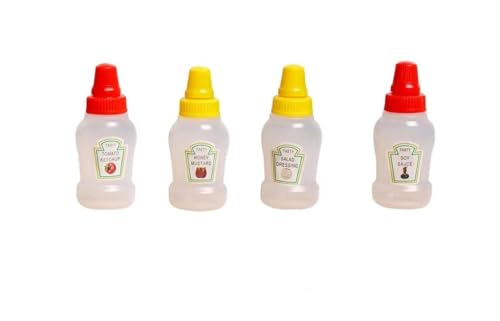 Generic - 4 عبوات صوص بلاستيك صغيرة – محكمة الغلق لللانش بوكس او السفر – بلاستيك آمن للطعام مانع للتسريب.