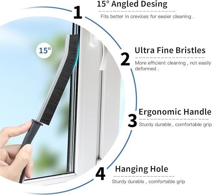 - 【متعددة الأغراض】 مناسبة لتنظيف مسارات النوافذ ومسارات الأبواب المنزلقة ومسارات باب الدش وفجوات غطاء المرحاض والفجوات حول أحواض المطبخ وأحواض الحمام وما إلى ذلك. بغض النظر عن المكان الذي تحتاج إلى تنظيفه، يمكن لهذه الفرشاة إكمال مهامك بشكل جيد وتُساعدك على الحفاظ على نظافة كل ركن من أركان منزلك.
