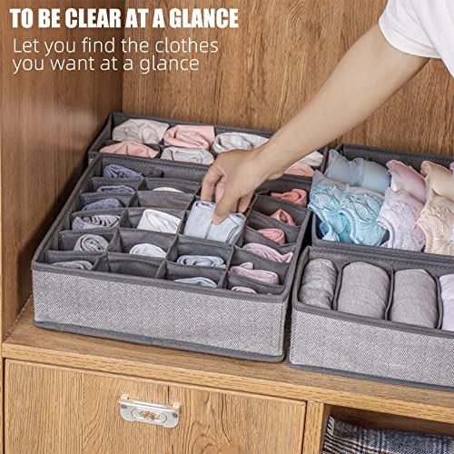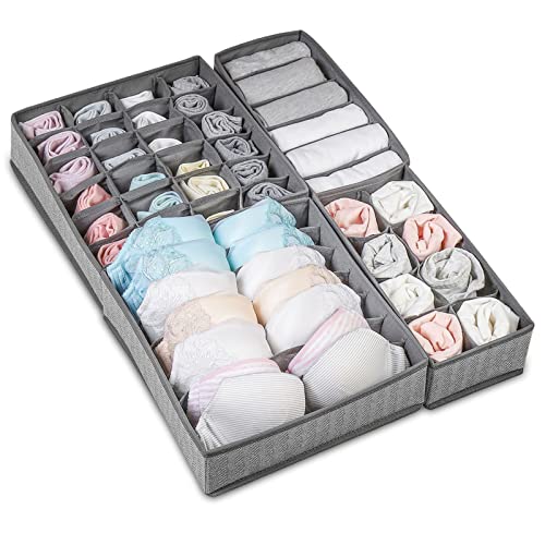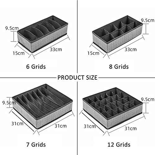 Generic - مجموعة منظمات أدراج قماشية قابلة للطي مزودة بفواصل لتنظيم وتخزين للشرابات والملابس الداخلية والبانتيهات وحمالات الصدر، 4 قطع، رمادي