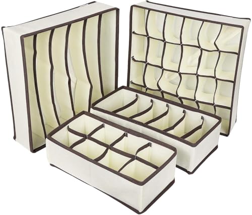 - مجموعة كاملة من 4 قطع: تتضمن أربعة صناديق قماشية قابلة للطي مصممة للحفاظ على الملابس الداخلية وحمالات الصدر والجوارب والأحزمة والضروريات اليومية مرتبة بدقة.