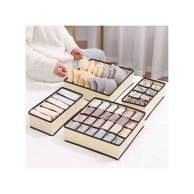 Generic - فواصل ادراج قماشية قابلة للطي من 4 قطع - صناديق تخزين لتنظيم الخزانة للملابس الداخلية وحمالات الصدر والجوارب والاحزمة والخزانات واساسيات خزانة الملابس - منظمات خفيفة الوزن قابلة للطي لتنظيم المنزل