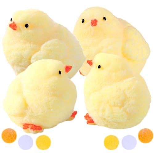 DERTE - لعبة تابا اسكويتش بتصميم كتكوت مصنوعة يدويا، إسفنجية ناعمة للضغط لتخفيف التوتر ولعبة حسية للبالغين والأطفال، ألعاب كاواي مبتكرة للقرص والضغط، 4 قطع