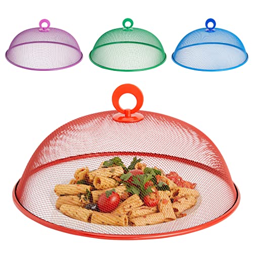 Juvale - أغطية طعام شبكية معدنية للتقديم في الهواء الطلق، عبوة 4 قطع (4 ألوان، 28 سم)