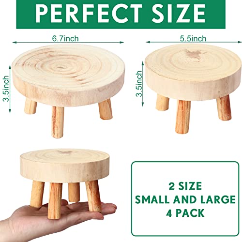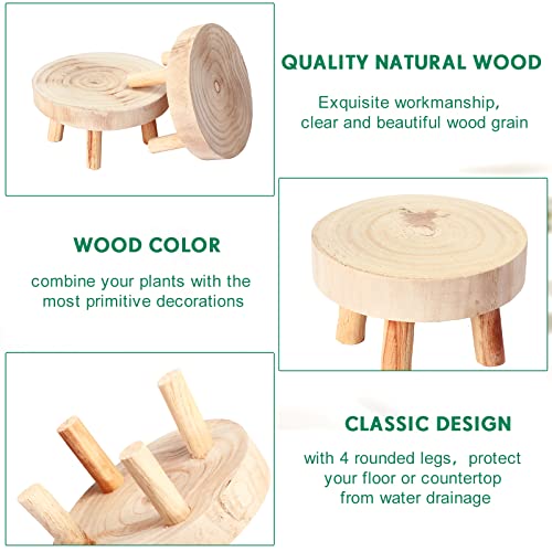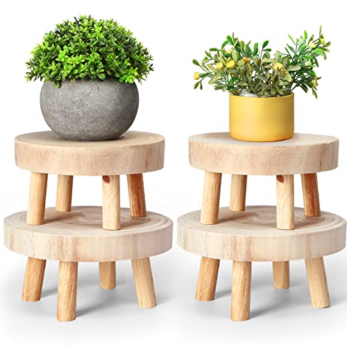 Hoteam - حامل عرض صغير من الخشب، حامل نباتات خشب دائري، رف زهور ديكوري صغير، حامل بونساي، حامل نباتات عصارية حديث، حامل أصيص نباتات الحديقة للديكور المنزلي، لون بيج خشبي، عبوة من 4 قطع