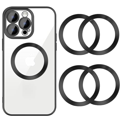 Oulores - 4 حلقات معدنية عالمية متعددة الالوان متوافقة مع ملصق ماج سيف، حلقة مغناطيسية رفيعة للغاية (0.4 ملم) لحافظات الموبايل والشحن اللاسلكي (اسود)