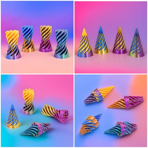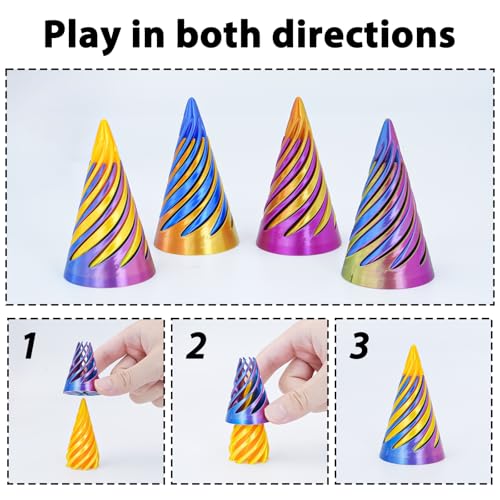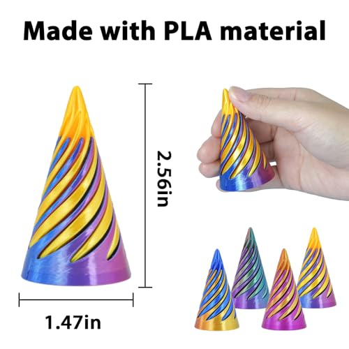 - 1. ️ مواد عالية الجودة وصديقة للبيئة مصنوعة من مادة بي ال ايه المتينة والصديقة للبيئة، تم تصميم هذه الألعاب المخروطية الحلزونية لتدوم طويلاً. تضمن تقنية الطباعة ثلاثية الأبعاد المستخدمة تفاصيل معقدة ولمسة نهائية ناعمة، مما يجعلها موثوقة وممتعة للاستخدام طويل الأمد.