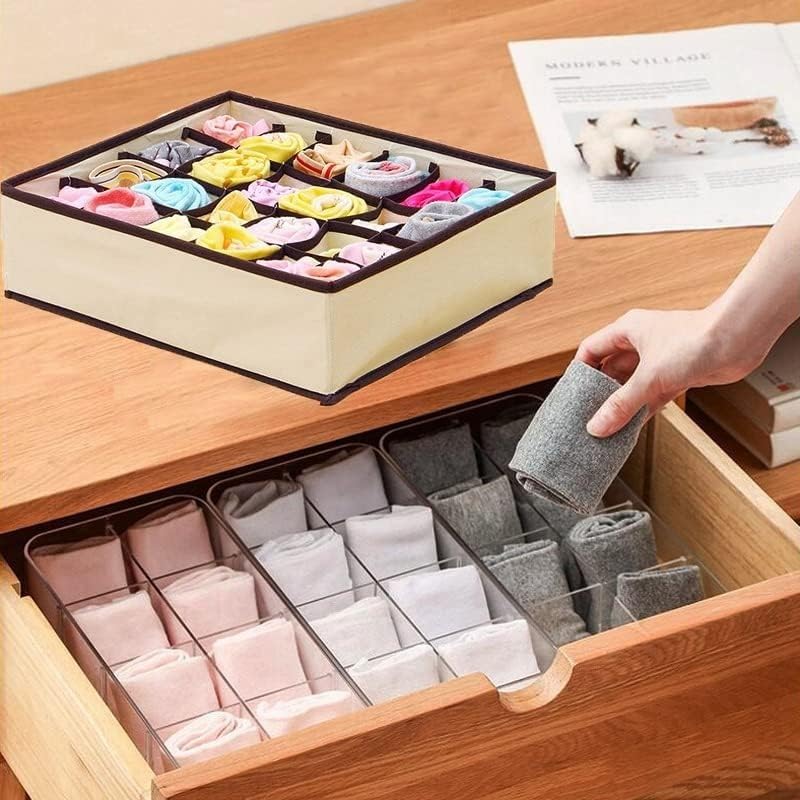 Generic - صناديق قماشية مقسمة بتصميم قابل للطي لتخزين وتنظيم دولاب الملابس وتنظيم الشرابات والملابس الداخلية - مجموعة من 4 قطع - لون بيج