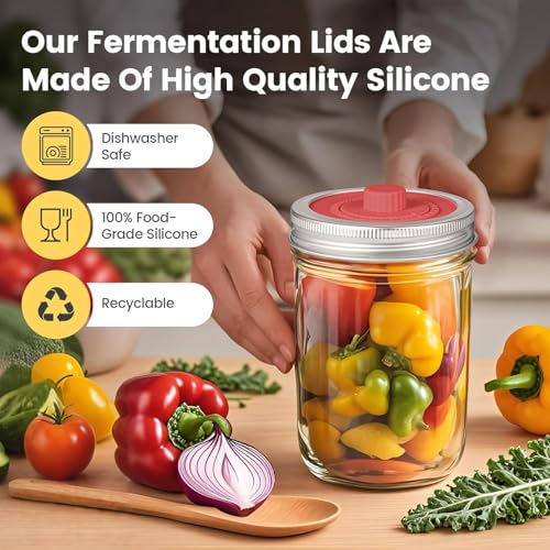 - التخمير الآمن في كل مرة: تجنب البرطمانات المتفجرة أو التخمير الفاشل! سدادة سيليكون محكمة الغلق وصمام تهوية تلقائية تمنع الأكسجين وتوازن الضغط للحصول على الأطعمة الغنية بالبروبيوتيك والمخمرة بشكل مثالي.