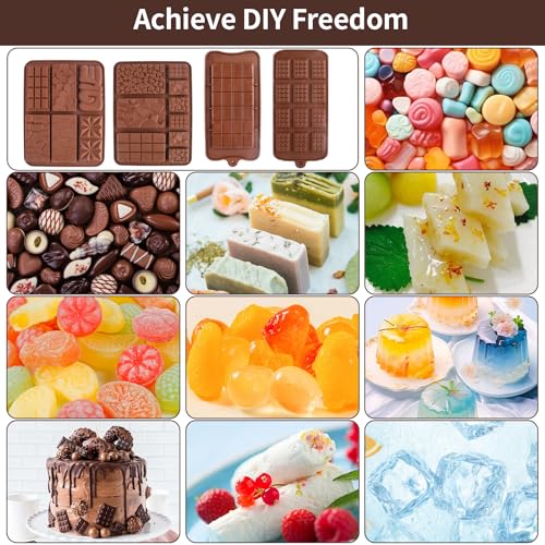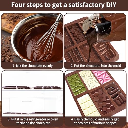 - 【أنواع مختلفة من القوالب】: تم تصميم أربعة قوالب شوكولاتة خصيصًا بأنماط رائعة مختلفة، مثل شكل القلب والمربع والنمط الماسي وما إلى ذلك. لمساعدتك على صنع حلويات رائعة، يمكنك بسهولة الحصول على تجربة يدوية ملونة في أي وقت وفي أي مكان.