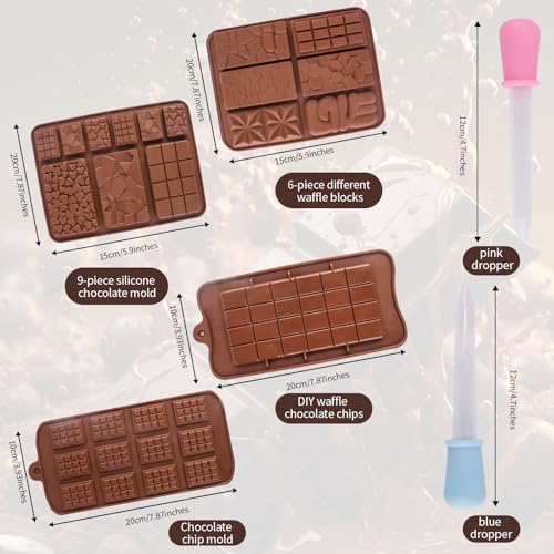 - 【محتويات المجموعة】: تتضمن قوالب السيليكون هذه 6 منتجات، تشمل قالب رقائق الشوكولاتة على شكل وافل، وقالب شوكولاتة سيليكون مكون من 9 قطع، وقالب وافل مكون من 6 قطع، وقالب رقائق الشوكولاتة، وقطارة وردية اللون، وقطارة زرقاء. تتميز قوالب السيليكون هذه بتنوعها، ما يلبي جميع احتياجاتك في صنع الحلويات بنفسك.