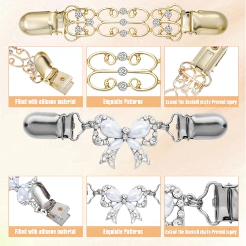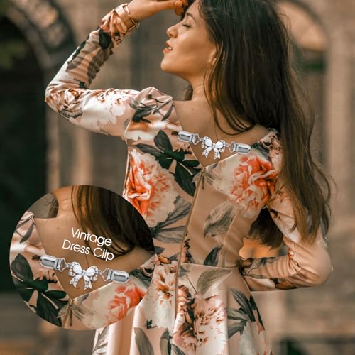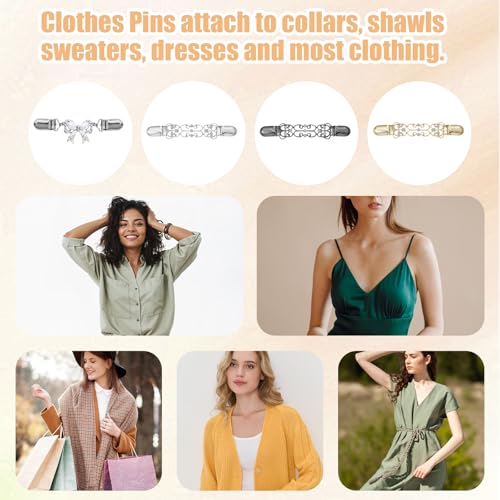 Xinjoduz - مجموعة مشابك خلفية للفساتين مكونة من 4 قطع، مشبك خصر ريترو للبلوفر والشال والكارديجان، مشبك لتضييق القمصان، إكسسوارات ملابس للنساء والفتيات من تصميمين (ذهبي، وفضي، وأسود)