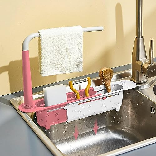 Generic - رف تخزين مزود بفتحة تصريف قابل للتوسيع سلة قابلة وبطول للتعديل بحرية منظم حوض بسعة كبيرة من برايم شوب 4 قطع بولي كربونات متعدد الألوان