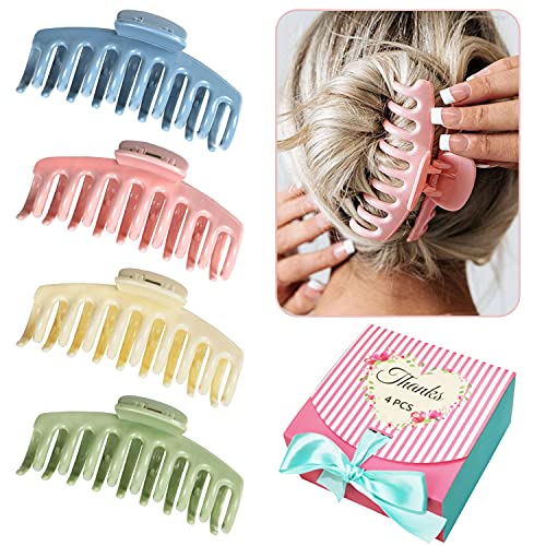 ESGHIFIVE - مشابك شعر كبيرة طويلة مخلبية 4.3 بوصة، مقاومة للانزلاق لتثبيت الشعر الكثيف والطويل، اكسسوارات للنساء والبنات مع علبة - 4 قطع