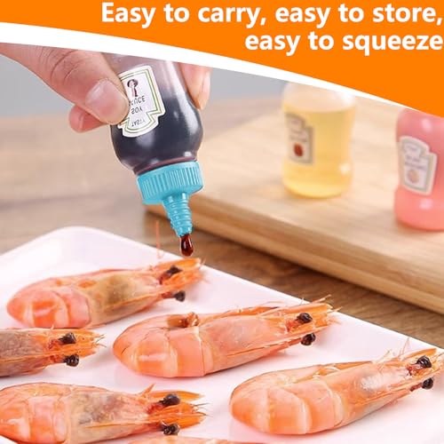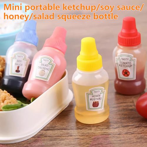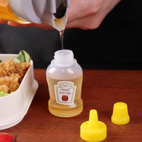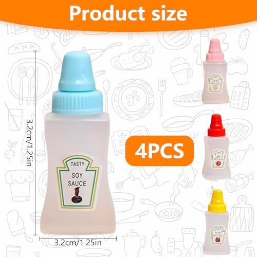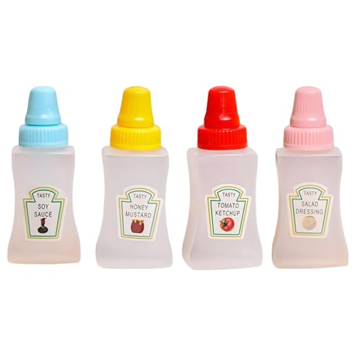 TRACOMPAN - 4 قطع من زجاجات الكاتشب الصغيرة، زجاجات صلصة قابلة للضغط، زجاجة بهارات 23 مل مع غطاء لولبي للعسل وصلصة الصويا وشراب السلطة، حاويات صغيرة محمولة لصندوق الغداء للمدرسة والنزهات والسفر