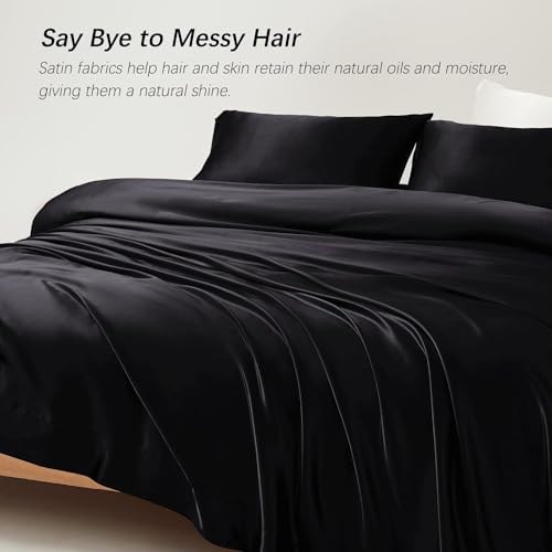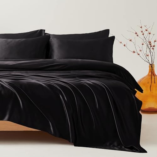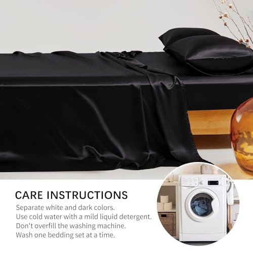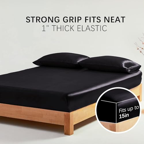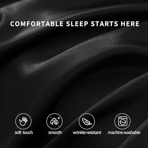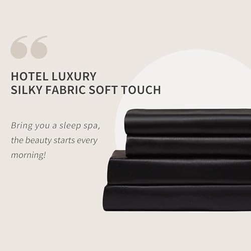 sheful - طقم ملايات سرير ساتان مقاس كينج 2.00 × متر، حريرية فاخرة بجودة الفنادق بجيب عميق 38.1 سم للمرتبة، 4 قطع، أسود، اللون، عدد الخيوط: 600، من شيفول