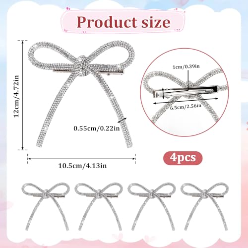 Styquenzer - 4 قطع من ربطات الشعر الفضية الكريستالية لتزيين الشعر في الحفلات الراقصة للنساء، مشابك شعر مرصعة باحجار الراين للنساء، مشابك شعر مرصعة بالجواهر غير قابلة للانزلاق، مشابك شعر على شكل منقار البط للشعر