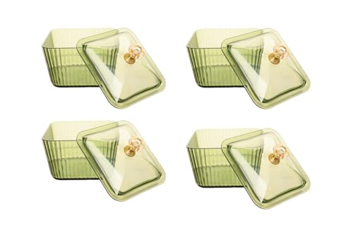 Generic - طقم علب اكريليك بمقابض للوجبات الخفيفة مع قاعدة بلاستيكية من 4 قطع، بلون أخضر غامق