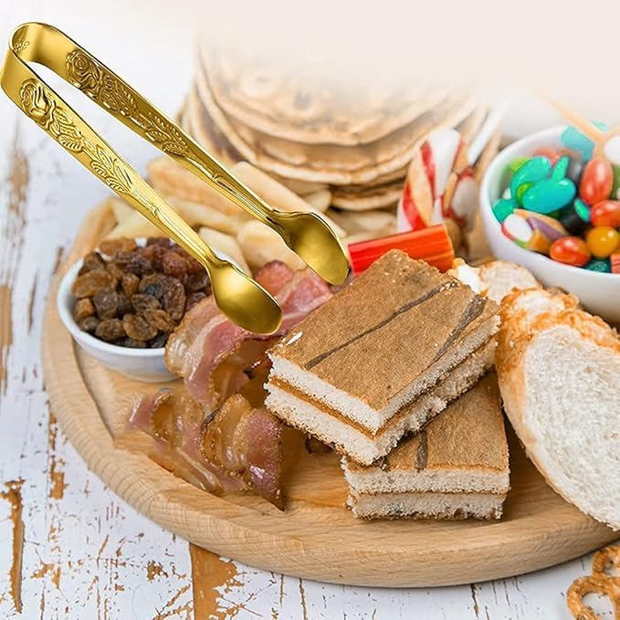 - أساسيات الترفيه وجاهزة للهدايا: مثالية للمضيفين والعروسين وعشاق تصميم الطعام. تضيف اللمسة النهائية الذهبية المتناسقة لمعانًا فوريًا إلى الألواح والأطباق والحوامل، مما يساعد الضيوف على تقديم الطعام بأنفسهم بأناقة. صغيرة الحجم وخفيفة الوزن، يمكن تخزين الملاقط بسهولة في الأدراج أو العلب وتوفر راحة احترافية للمقهى للمطابخ اليومية والمناسبات الخاصة على حد سواء.