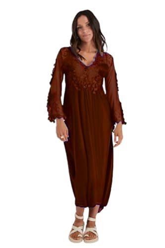 GAMAL SONS FOR ABAYA - طقم لانجري مكون من 4 قطع بحمالات وروب وحمالة من الساتان والدانتيل والشيفون للعبايات (GS-) 3135 بيرنت (نبيتي)