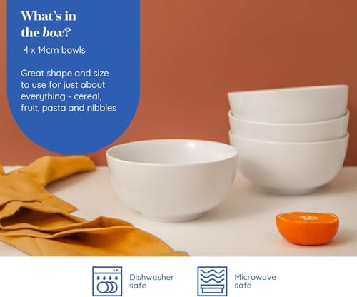 Generic - طقم أطباق عميقة مكون من 4 قطع من أطباق الحبوب المصنوعة من البورسلين باللون الأبيض، بولة شوربة من البورسلين باللون الأبيض بقطر 14 سم، مغلف في علبة هدايا وآمن للاستخدام في الميكروويف وغسالة الأطباق