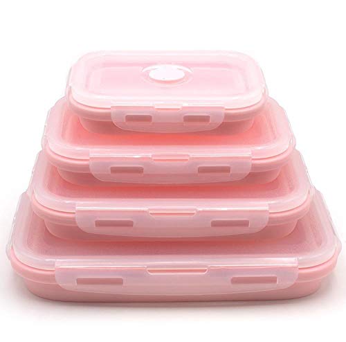 Spaceshoop - مجموعة لانش بوكس لحفظ طعام من السيليكون قابلة للطي مكونة من 4 قطع