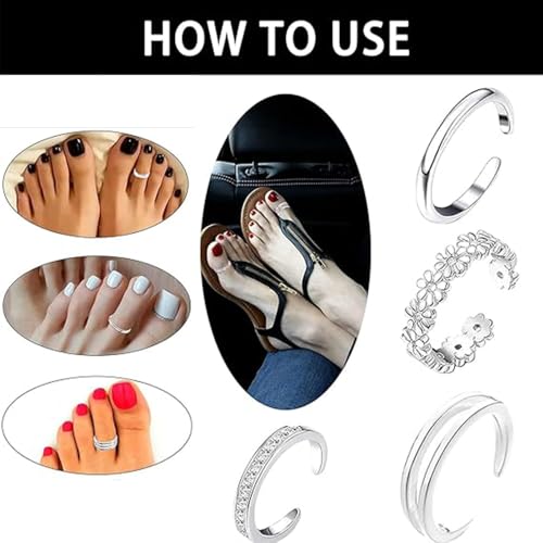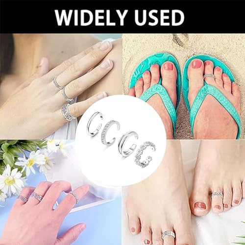 fashion mania - مجموعة خواتم اصبع القدم الفضية من 4 قطع قابلة للتعديل من الستانلس ستيل مقاومة للماء ولا تفقد بريقها في الصيف والشاطئ