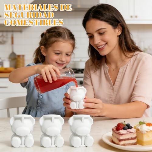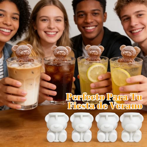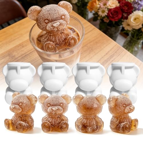 Vipula - 4 قطع من قوالب الثلج على شكل دب، قوالب ثلج سيليكون على شكل دب ثلاثي الابعاد، قوالب مكعبات لطيفة، قوالب صنع ثلج مرنة للمشروبات المجمدة، رائعة للكوكتيل او الويسكي او فحم الكوك