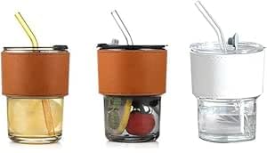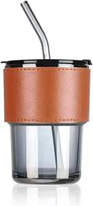 - عدد 4 كوب مياه زجاجي مع ماصة وغطاء سعة 435 مل بتصميم محمول للسفر مناسب للمشروبات الساخنة والباردة حافظة واقية من الجلد بفتحة واسعة وقابل لاعادة الاستخدام