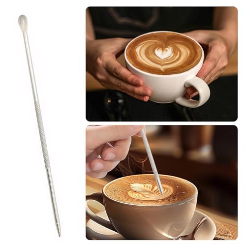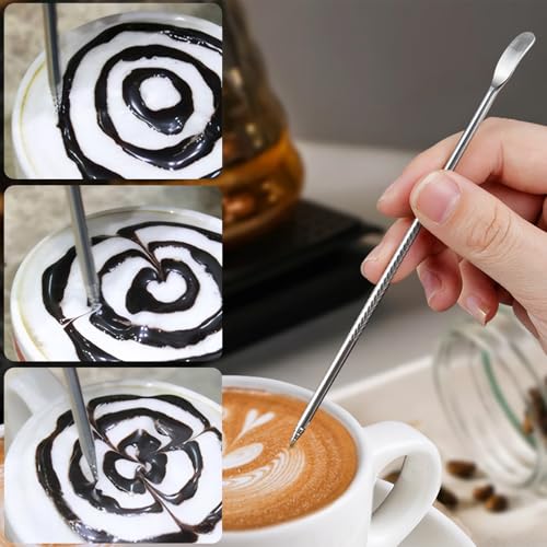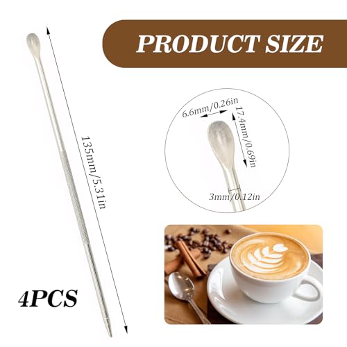 ROBOHOOK - 4 قطع من اقلام فن اللاتيه والقرفة للقهوة، قلم فن اللاتيه مزدوج الاطراف، فضي من الستانلس ستيل، لبار القهوة، باريستا يصنع تصميمات القهوة الابداعية