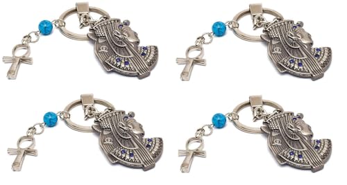 immatgar - 4 قطع من سلسلة مفاتيح كليوباترا الفرعونية من ايماتجار، هدايا تذكارية مصرية من مصر، فرعون اسود فاتح مع مفتاح عنخ، مقاس واحد