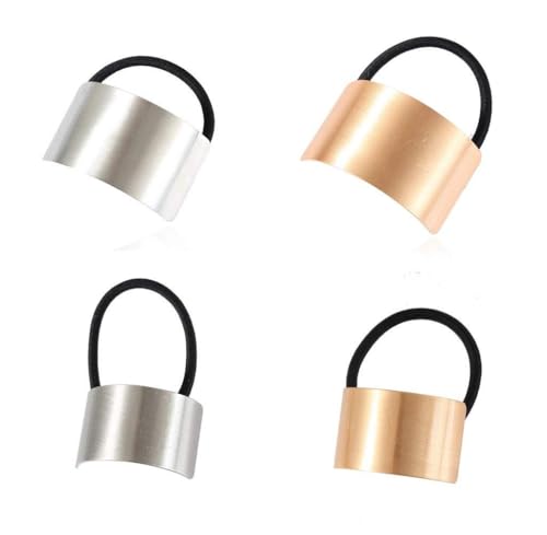 Generic - ربطات شعر معدنية مستطيلة للنساء والفتيات، مصقولة، مرنة، لتصفيف ذيل الحصان، 4 قطع، ذهبي وفضي