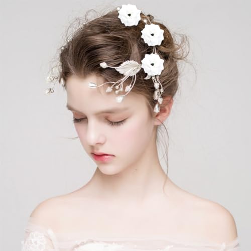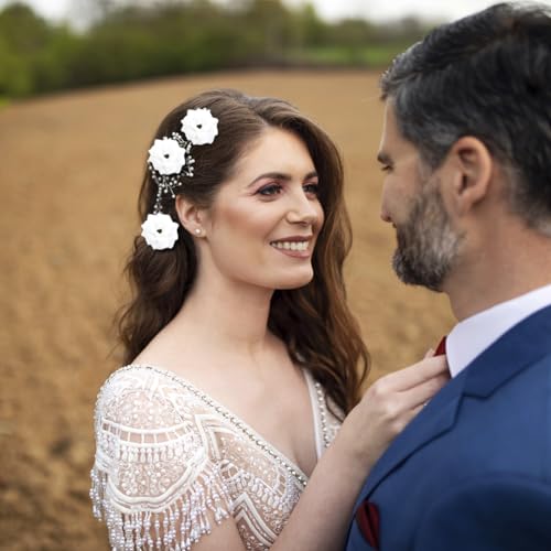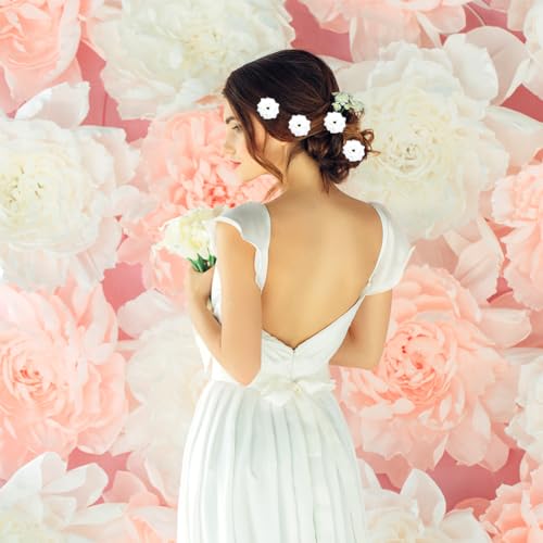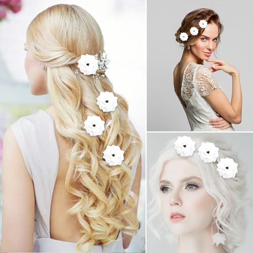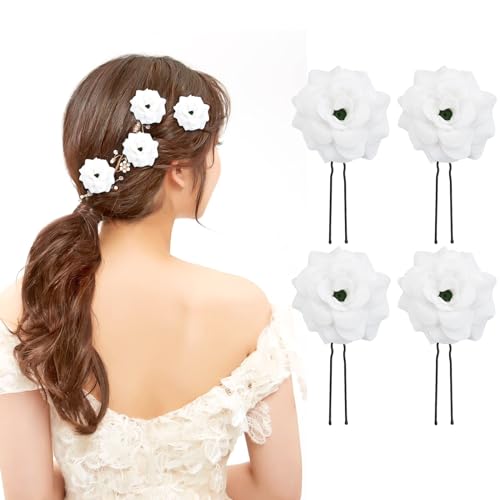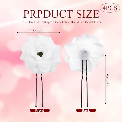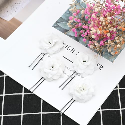 Larfraecy - مشابك شعر بوردة الروز، بنس شعر وردة بمشبك، ودبوس شعر بوردة قطيفة وأربطة رأس لاكسسوار شعر العروس، اكسسوارات شعر وردة عتيقة لنساء وبنات لحفلات وشاطئ وزفاف، دبابيس شعر على شكل حرف U، 4 قطع (أبيض)