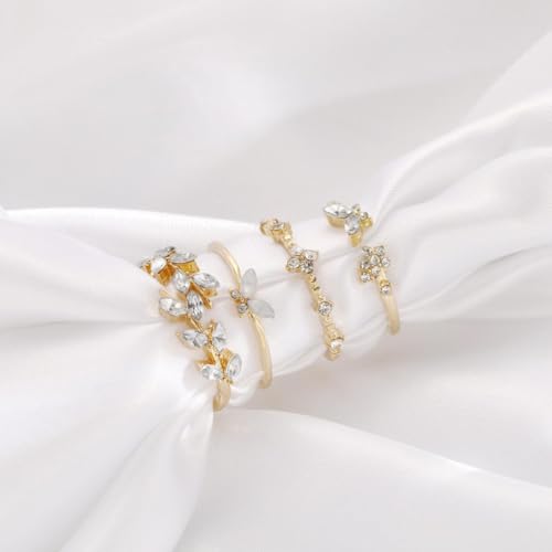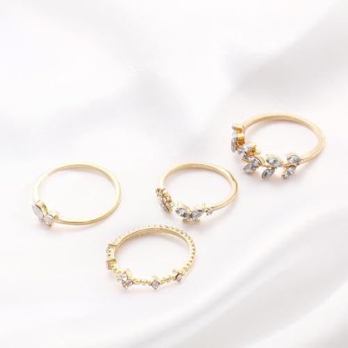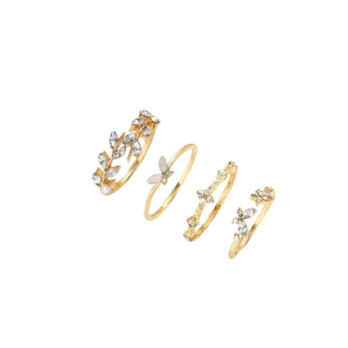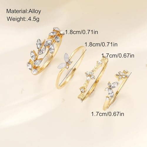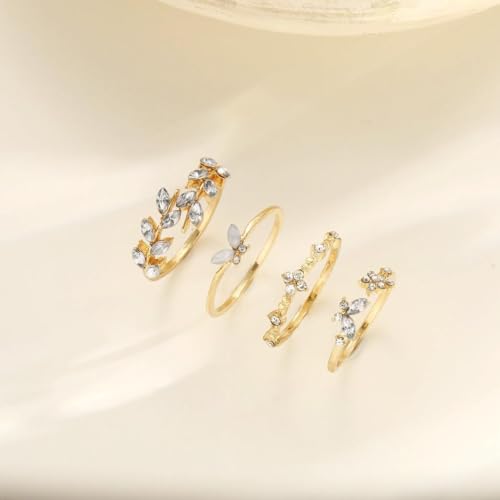 FRIDAYIN - طقم خواتم مطلية بالذهب بتصميم عصري بوهيمي على شكل زهرة وفراشة وورقة شجرة، حلي أنيق عصري للنساء، 4 قطع