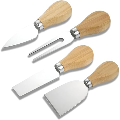 Generic - طقم سكاكين جبن من الفولاذ المقاوم للصدأ بمقابض خشب، أدوات مثالية لألواح التقطيع شيرتري، طقم 4 قطع يتضمن قطاعة جبن، وسكينة زبدة، وسكينة صغيرة، وشوكة