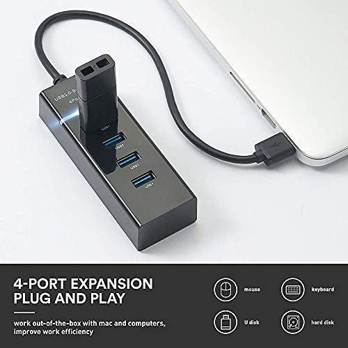 - 💻موزع منافذ USB 3.0، قم بتوسيع منفذ USB واحد للكمبيوتر إلى أربعة منافذ USB، قم بالتوصيل والتشغيل، لا حاجة إلى تثبيت برنامج تعريف؛