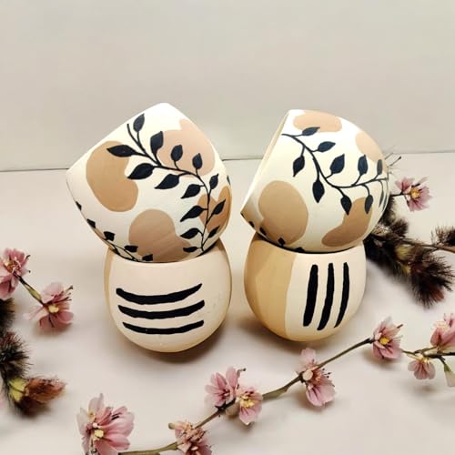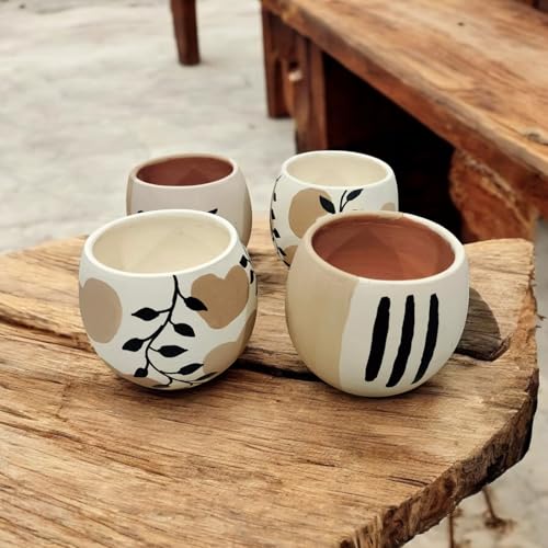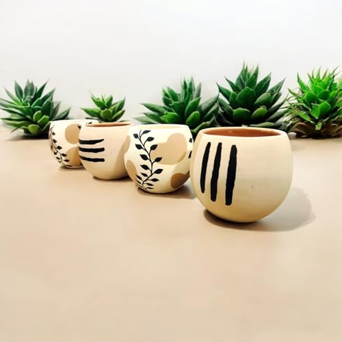 - 4 اصيص زرع فخار - مقاس 10 سم لتزيين المكتب واكسسوارات