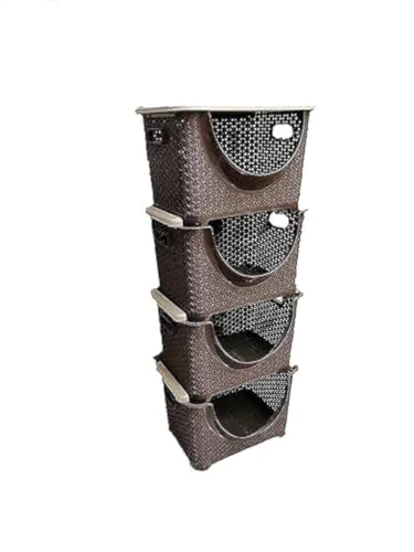 Other - ارفف تخزين شانون راتان 4 دور بنى بيج، مفروك بالزيت