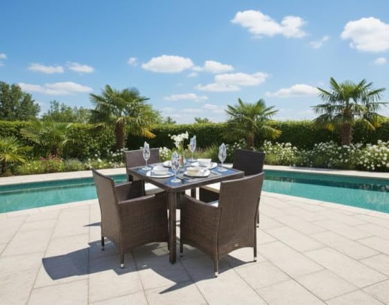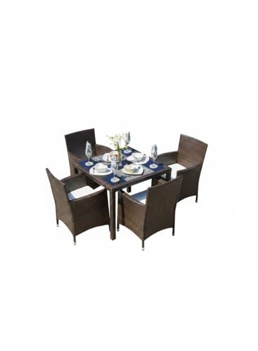 Generic - طقم طعام خارجي مكون من 4 مقاعد من الراتان مع وسائد بلون بني، 5 قطع