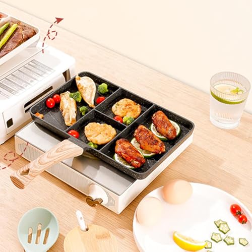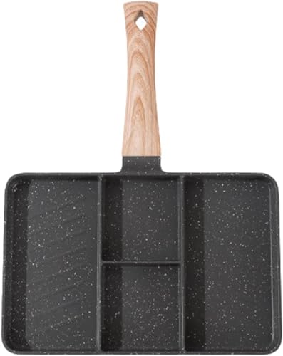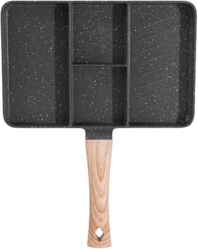 عام - جريل مقسم مستطيل 4 أقسام بطبقة غير لاصقة بمقبض خشبي مقاوم للحرارةمثالي لطهي وجبات متعددة في وقت واحد بسهولة وتنظيف سريع، تصميم عملي