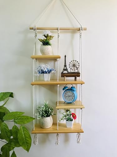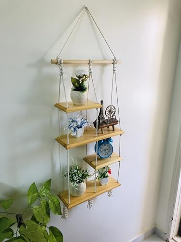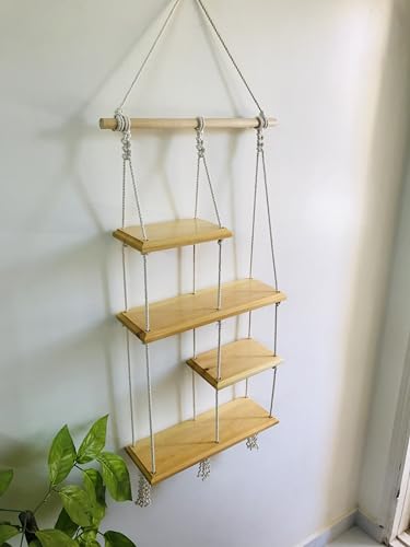 Homz - رفوف ديكور من خشب المسك الطبيعي معلقة على خيوط مكرمية من 4 قطع، 90 × 40 × 14 سم